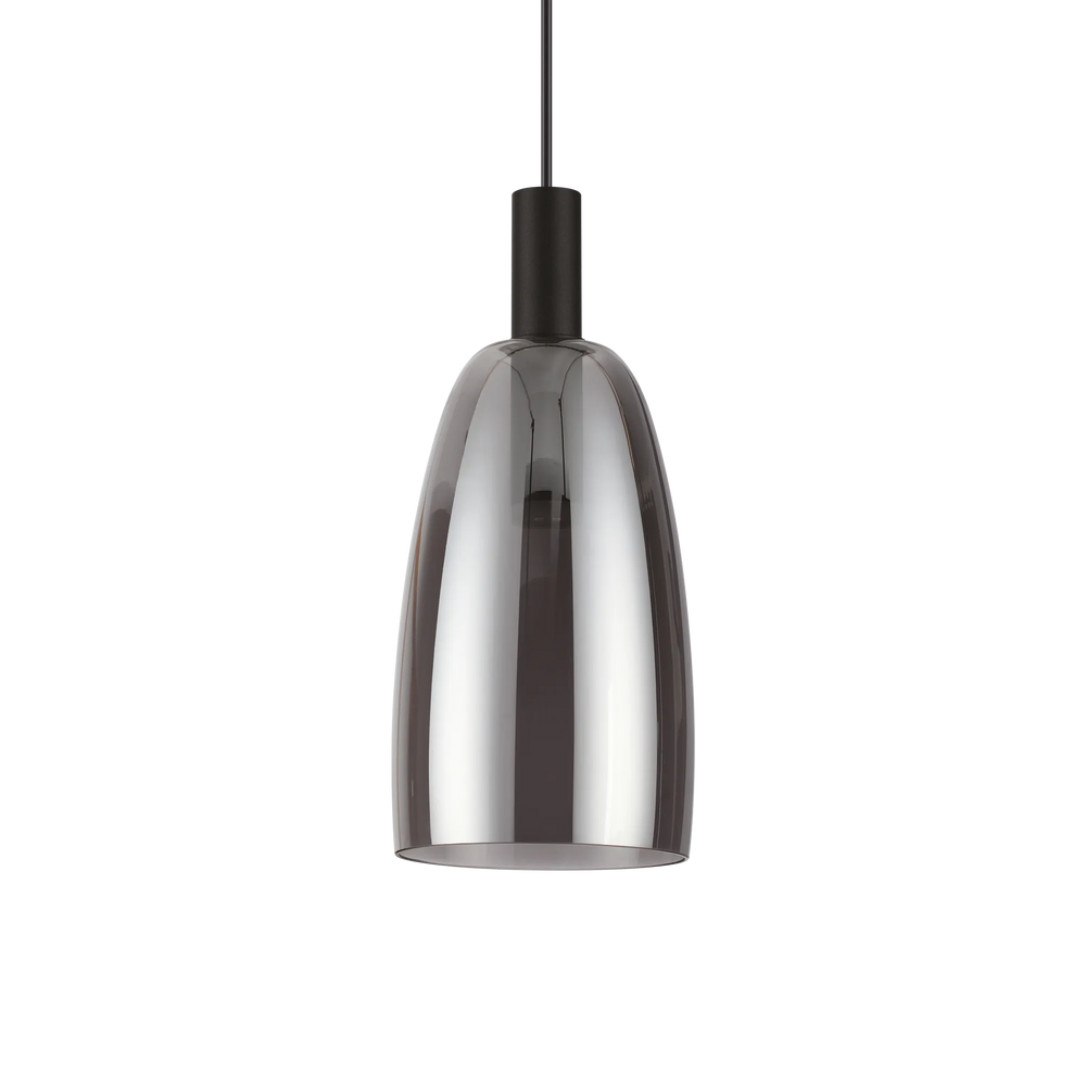 Montatura in metallo verniciato a polveri con finitura nera. Diffusore in acrilico trasparente con bordo laterale satinato. Vetro soffiato trasparente con finitura fumee. Cavo in pvc regolabile. Dal design estremamente elegante e contemporaneo, caratterizzato da un gioco di forme asimmetriche e finiture riflettenti. Possibile creare la combinazione delle 3 sospensioni per creare un ambiente unico e che offre un'illuminazione efficiente.