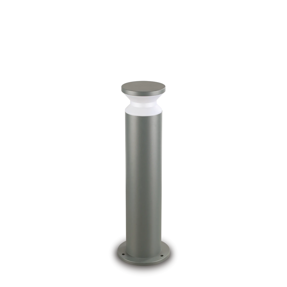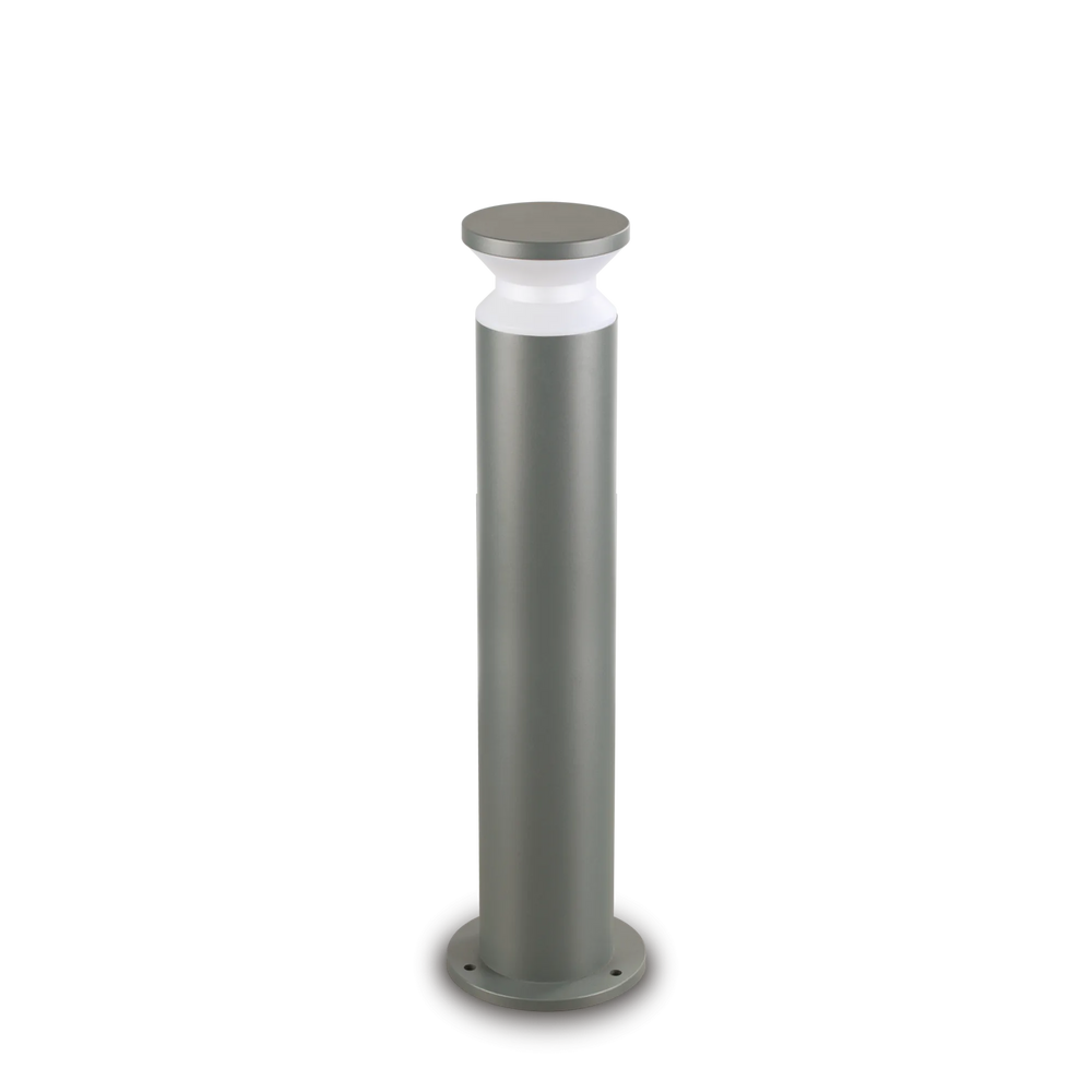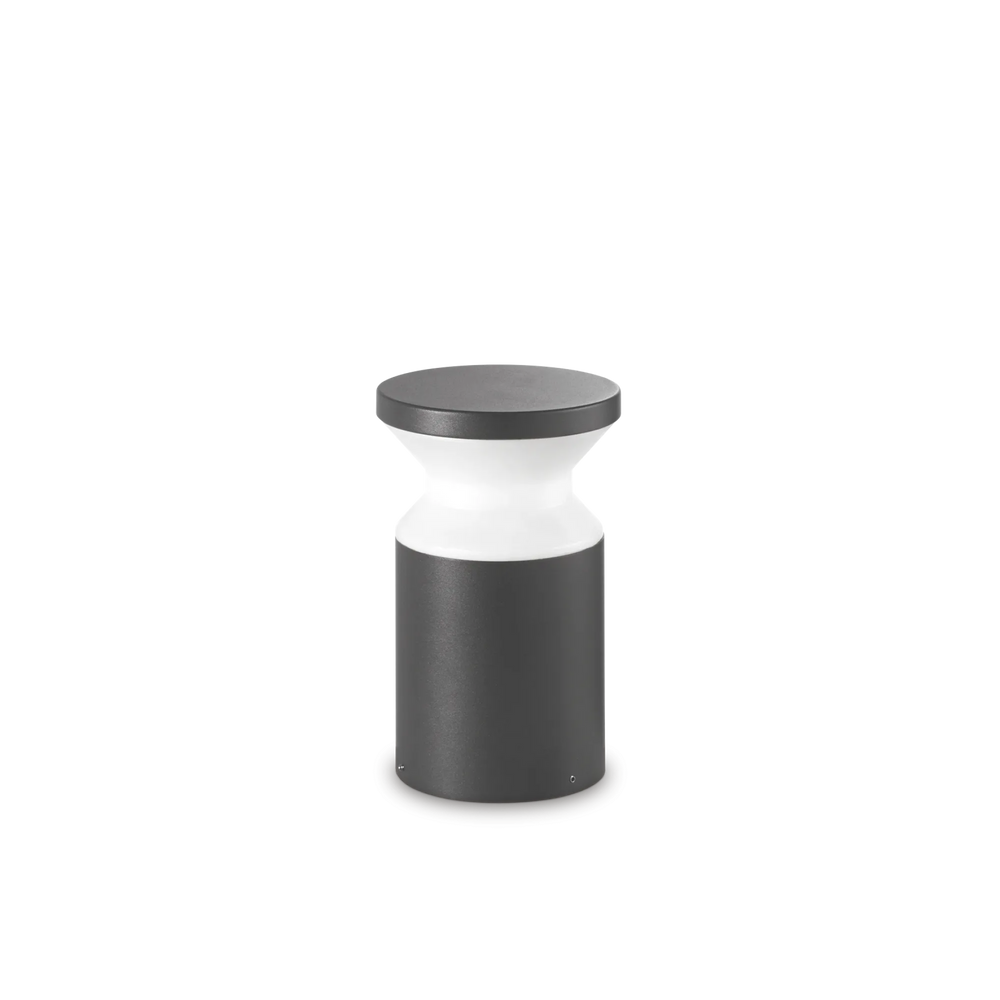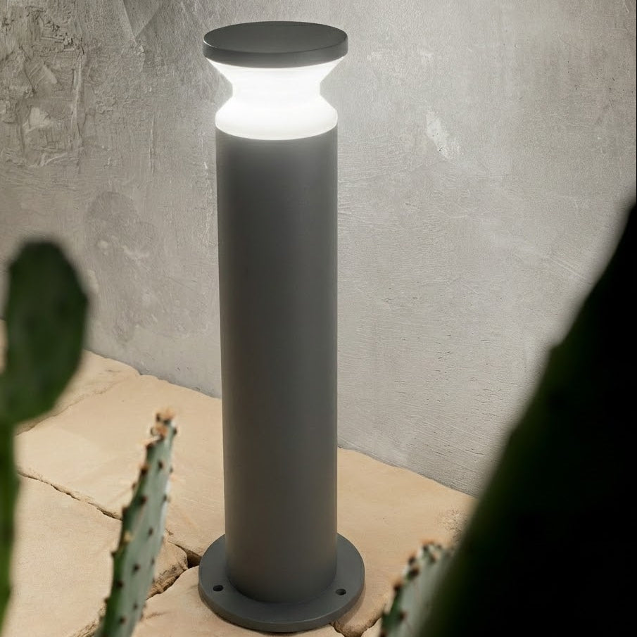 Corpo luce in alluminio tornito verniciato a polveri con finitura antracite. Diffusore in materiale plastico OPALE. Pensato per un'illuminazione d'accento che unisce estetica e funzionalità. Emette un fascio di luce uniforme tutto intorno alla colonna. È perfetto per segnare il percorso o per creare un'illuminazione diffusa in un'aiuola. Come si vede nell'immagine, la luce crea un contrasto netto e scenografico con le ombre delle piante, valorizzando i volumi del giardino. Dotato di grado di protezione IP65 che lo rende immune a pioggia battente e polvere.