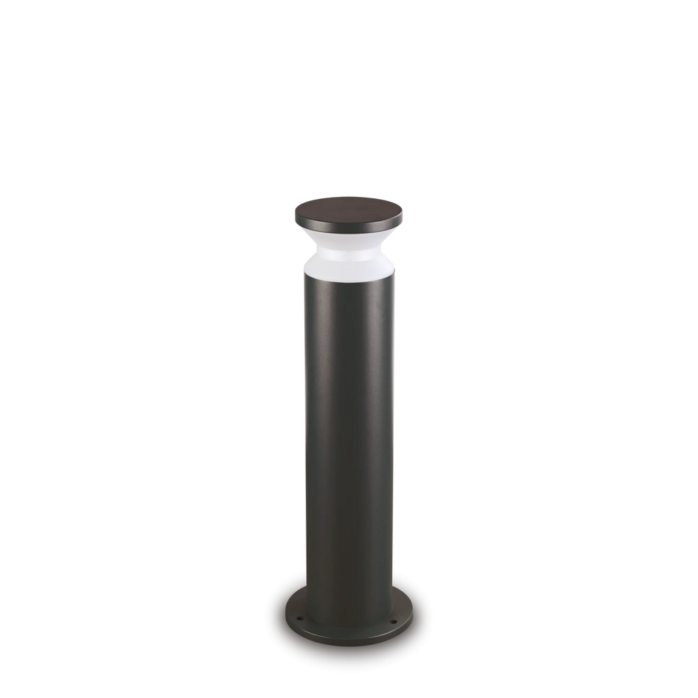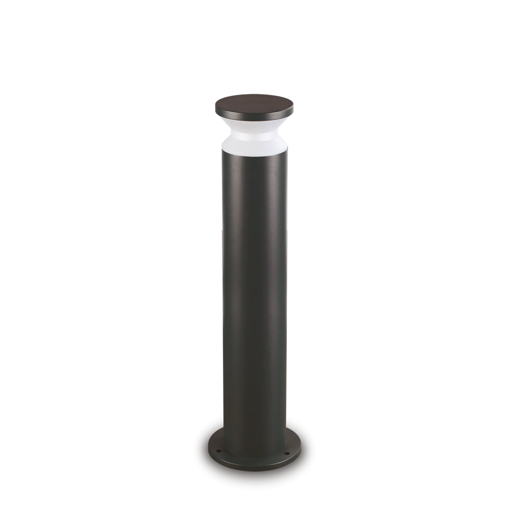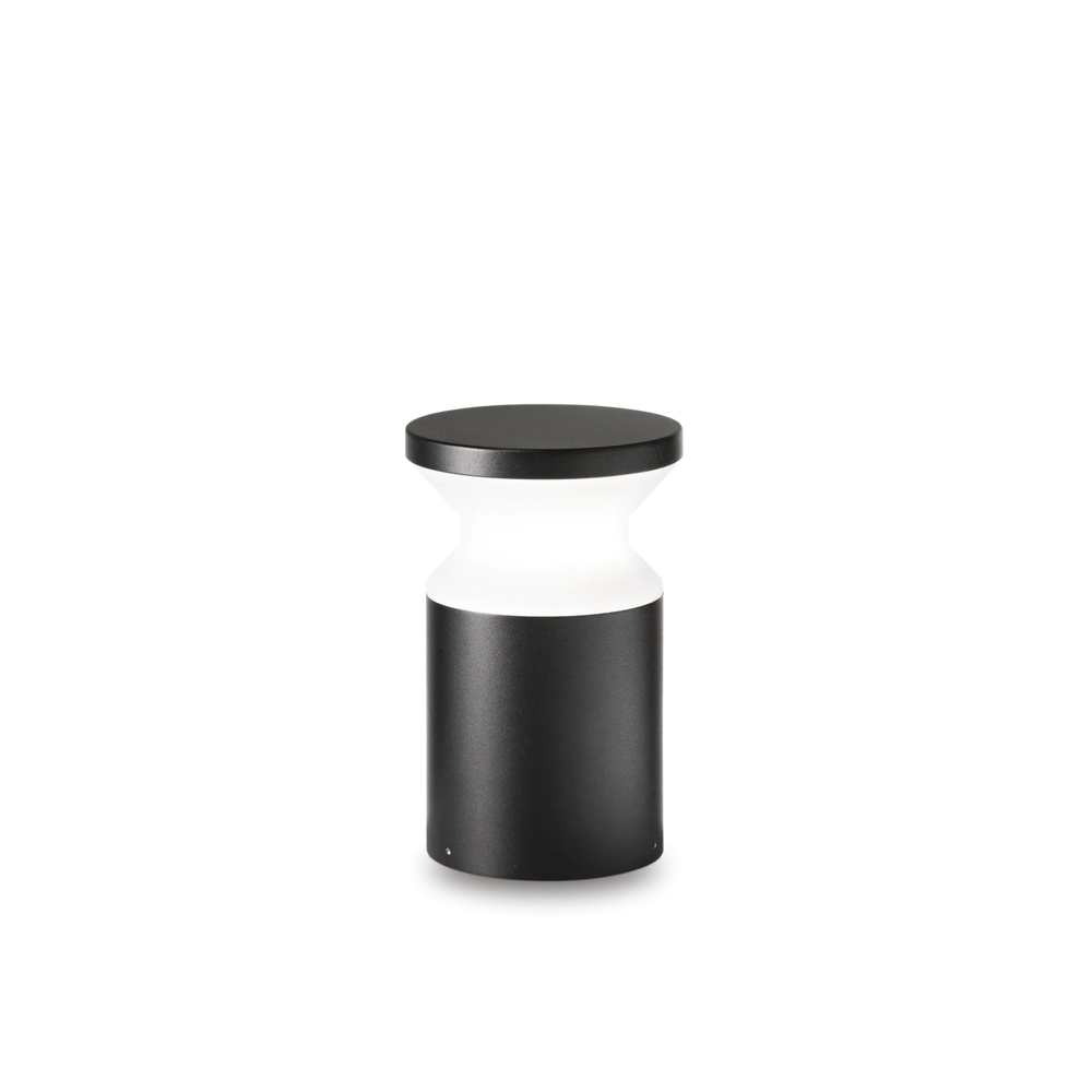 Corpo luce in alluminio tornito verniciato a polveri con finitura nero. Diffusore in materiale plastico OPALE. Pensato per un'illuminazione d'accento che unisce estetica e funzionalità. Emette un fascio di luce uniforme tutto intorno alla colonna. È perfetto per segnare il percorso o per creare un'illuminazione diffusa in un'aiuola. Come si vede nell'immagine, la luce crea un contrasto netto e scenografico con le ombre delle piante, valorizzando i volumi del giardino. Dotato di grado di protezione IP65 che lo rende immune a pioggia battente e polvere.