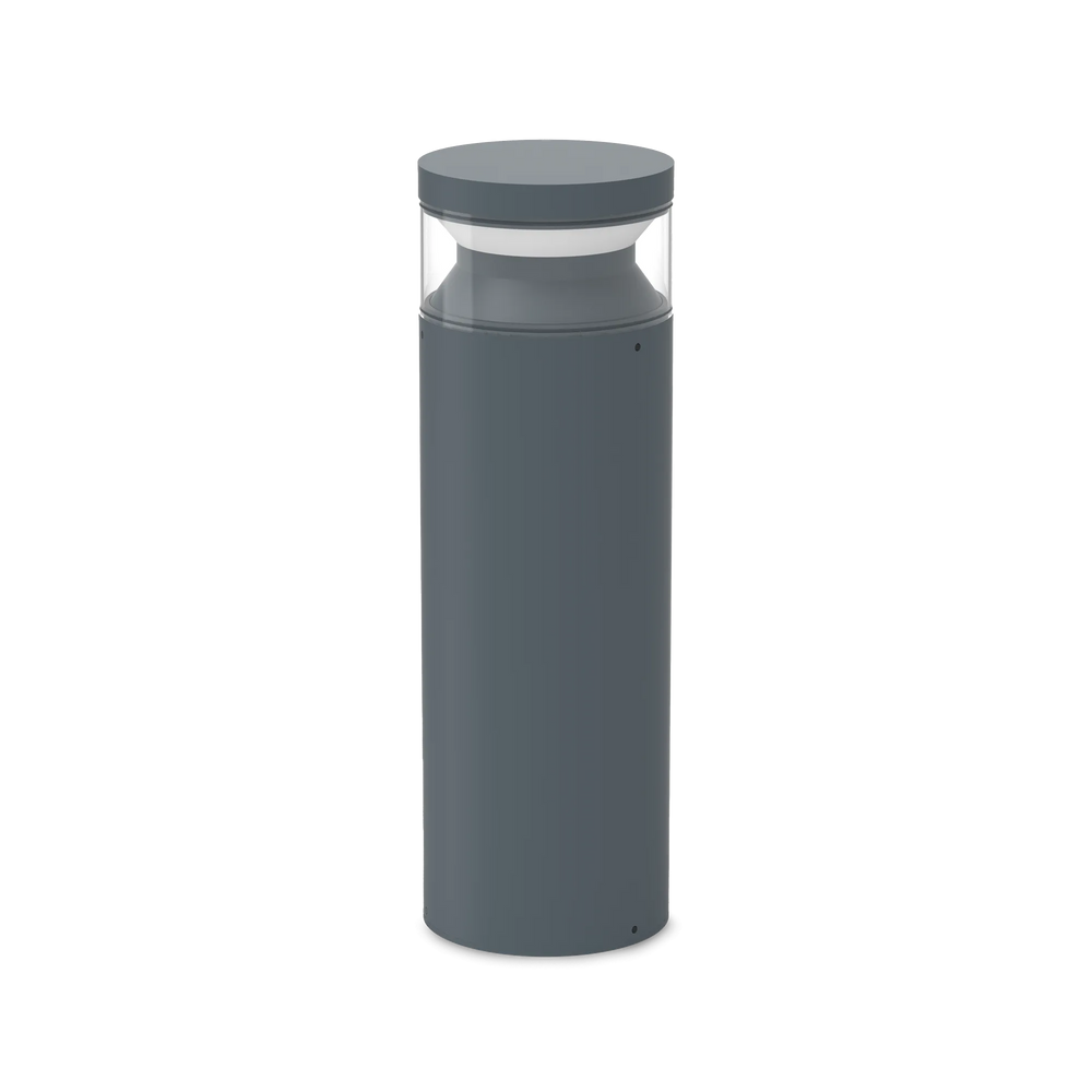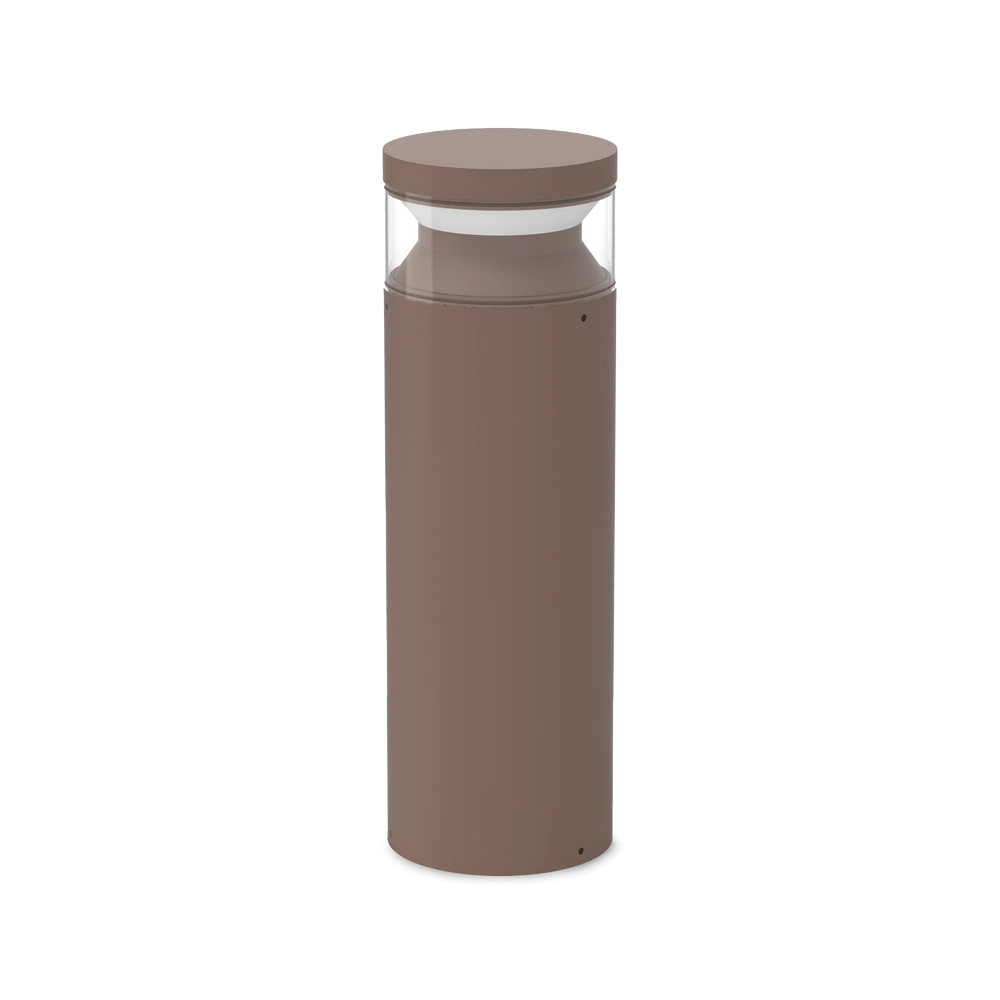Corpo luce in alluminio pressofuso verniciato a polveri. Diffusore composto da protezione esterna in policarbonato trasparente fumee ed elemento interno in acrilico opale satinato che orienta la luce in basso. Colori: antracite, coffee, nero. Pensato per un'illuminazione d'accento che unisce estetica e funzionalità. Emette un fascio di luce uniforme tutto intorno alla colonna. È perfetto per segnare il percorso o per creare un'illuminazione diffusa in un'aiuola, valorizzando i volumi del giardino. Dotato di grado di protezione IP65 che lo rende immune a pioggia battente e polvere.