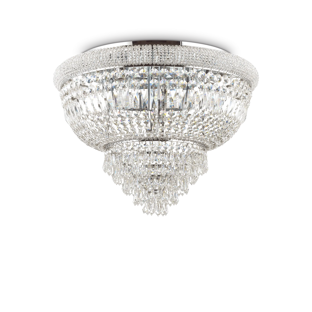 Montatura in metallo con finitura cromo o ottone. Elementi decorativi con perle, ottagoni e prismi in cristallo molato trasparente. Perfetta per illuminare e arredare cucina, soggiorno corridoio e camera da letto. Modello di ispirazione classica e lussuosa, progettato per creare scenografici giochi di luce attraverso una ricca decorazione in cristallo. Gli elementi sono sostenuti da una struttura in metallo lucido che riflette ulteriormente la brillantezza dei cristalli. È un pezzo che non serve solo a illuminare, ma funge da vero e proprio gioiello d'arredo, capace di impreziosire ambienti formali, ingressi eleganti o zone living classiche.