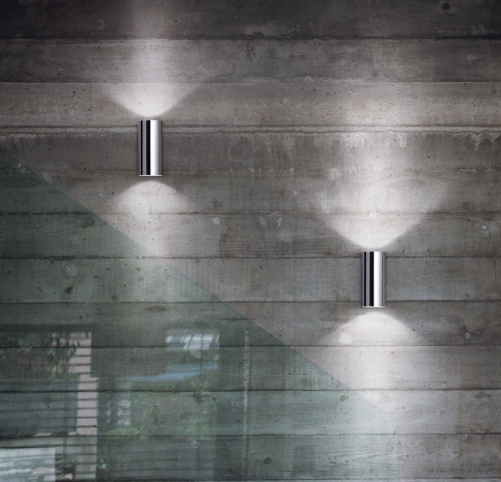 Applique con base e corpo luce in metallo verniciato a polveri o placcato in diverse finiture tra cui, bianco, nero, ottone, cromo, rame, brunito. Ideale per cucina, salotto, camera da letto e corridoio. Offre un'illuminazione eccellente grazie alla biemissione luminosa. Disponibile in due misure: