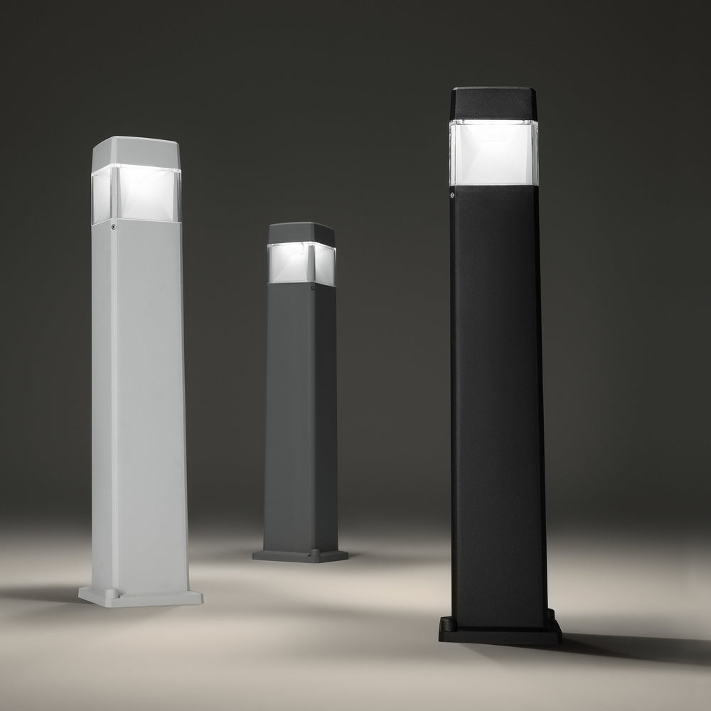 Corpo luce in resina resistente a corrosione, UV, a temperature da -60°a +90° C. Diffusore trasparente anti ingiallimento. Combina un design solido e squadrato con un'illuminazione funzionale per percorsi e giardini. Perfetto per delimitare i bordi di un sentiero o l'ingresso di un garage.